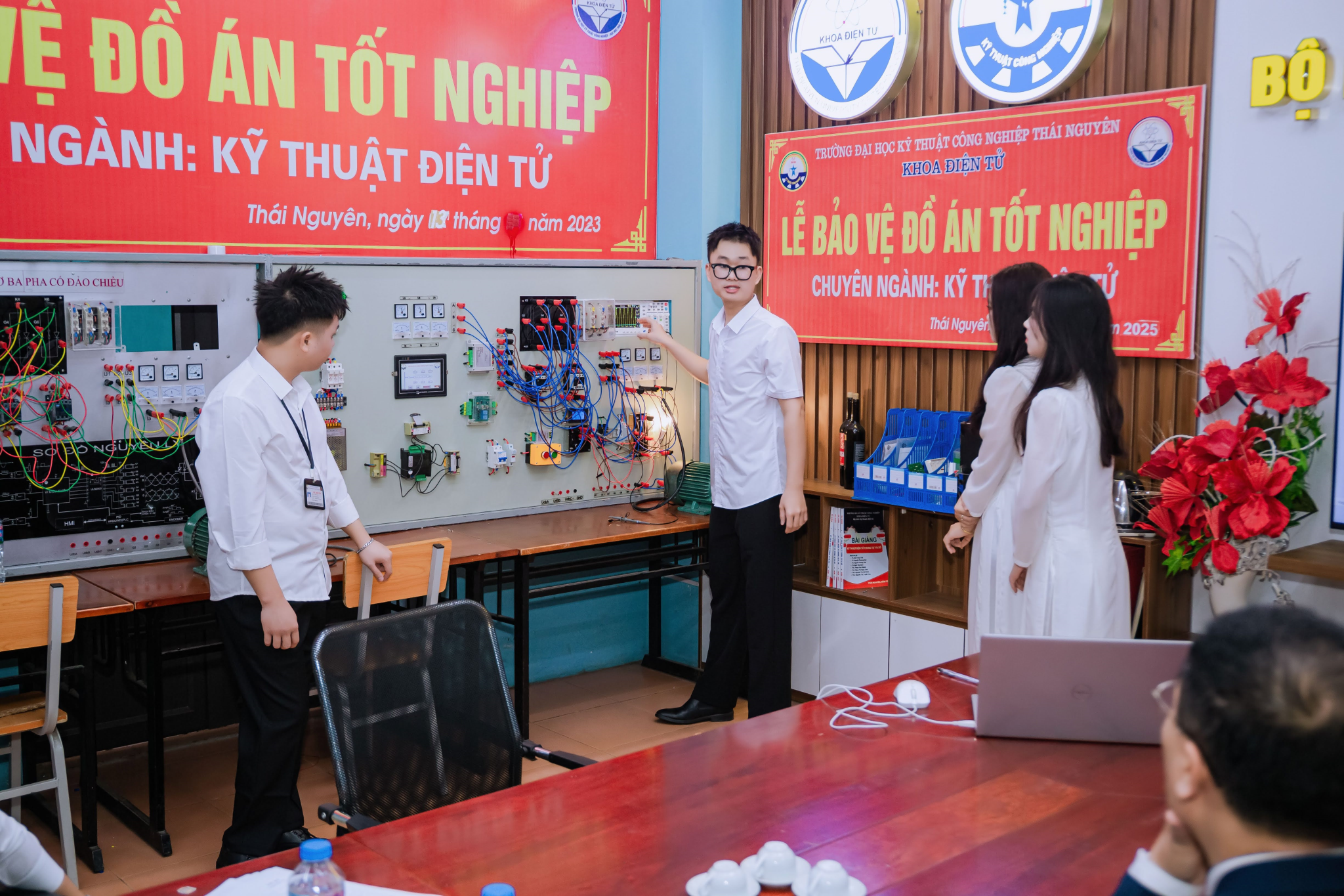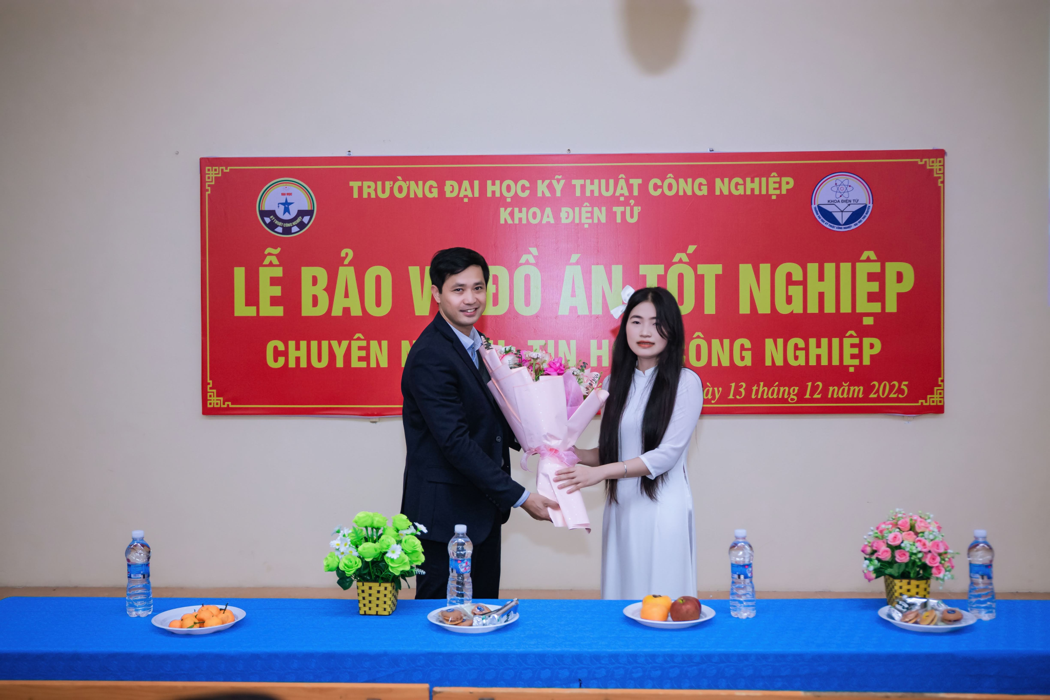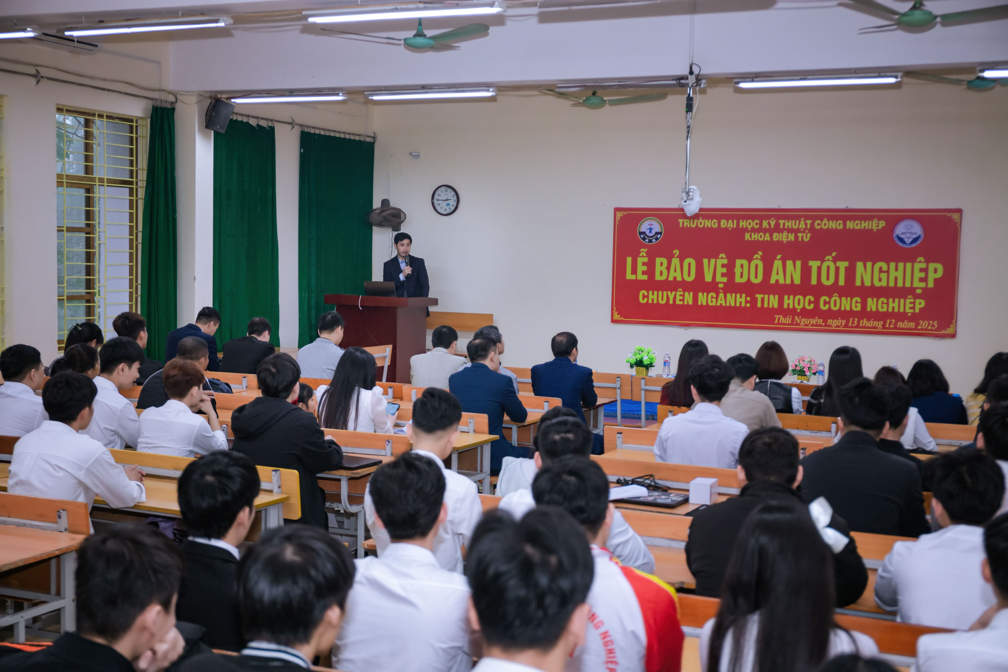 Lễ bảo vệ đồ án tốt nghiệp đợt 1 năm học 2025 – 2026 của Khoa Điện tử – Trường Đại học Kỹ thuật Công nghiệp đã khẳng định chất lượng học thuật của các đồ án, năng lực của sinh viên tốt nghiệp và vai trò của nhà trường trong việc đào tạo nguồn nhân lực kỹ thuật có trình độ chuyên môn vững vàng, sẵn sàng đáp ứng yêu cầu của nền công nghiệp hiện đại và quá trình chuyển đổi số hiện nay.