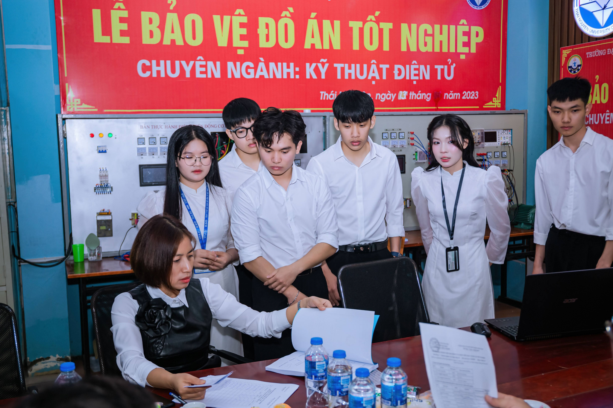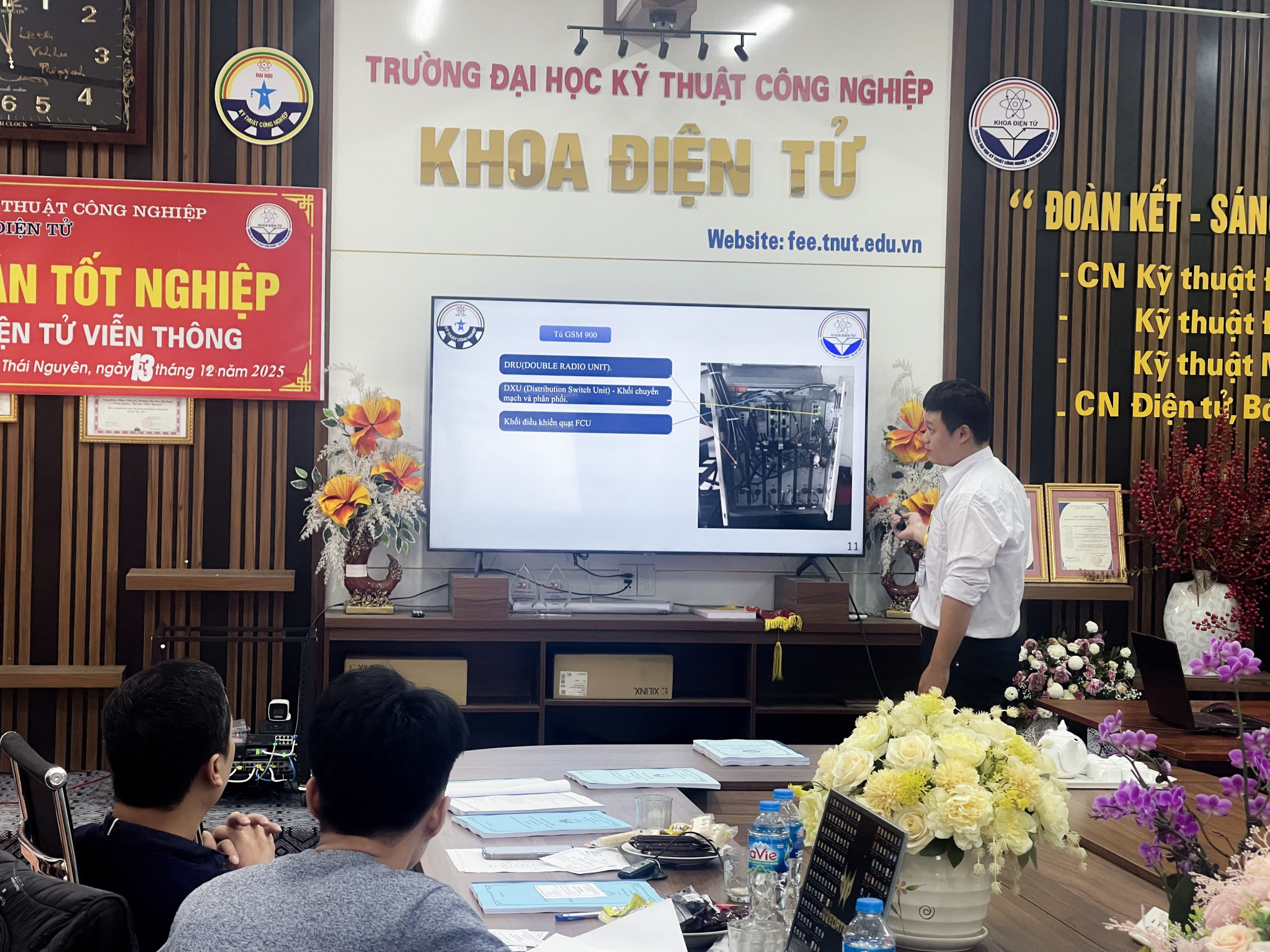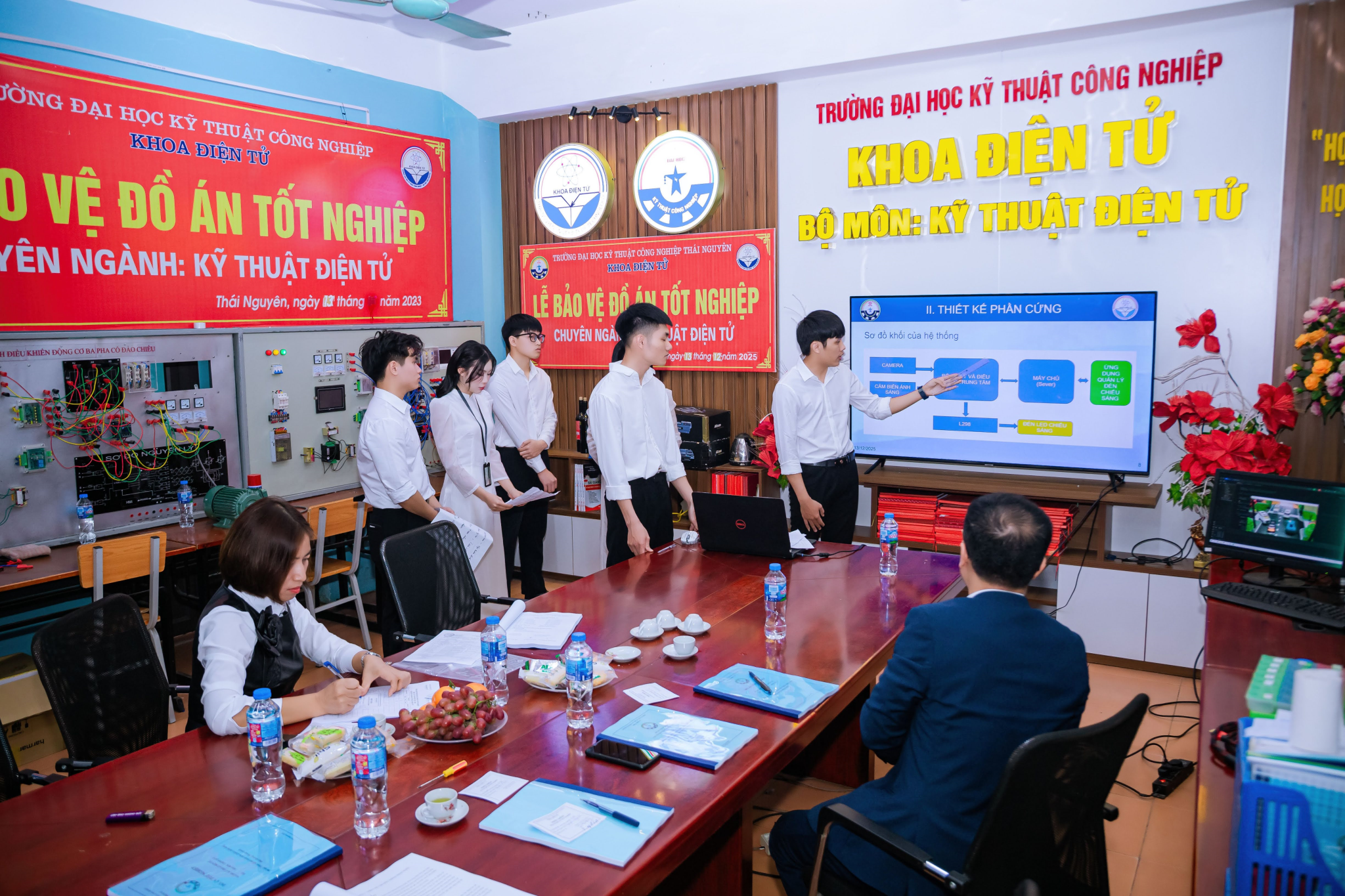 Lễ bảo vệ đồ án tốt nghiệp đợt 1 năm học 2025 – 2026 của Khoa Điện tử – Trường Đại học Kỹ thuật Công nghiệp đã khẳng định chất lượng học thuật của các đồ án, năng lực của sinh viên tốt nghiệp và vai trò của nhà trường trong việc đào tạo nguồn nhân lực kỹ thuật có trình độ chuyên môn vững vàng, sẵn sàng đáp ứng yêu cầu của nền công nghiệp hiện đại và quá trình chuyển đổi số hiện nay.